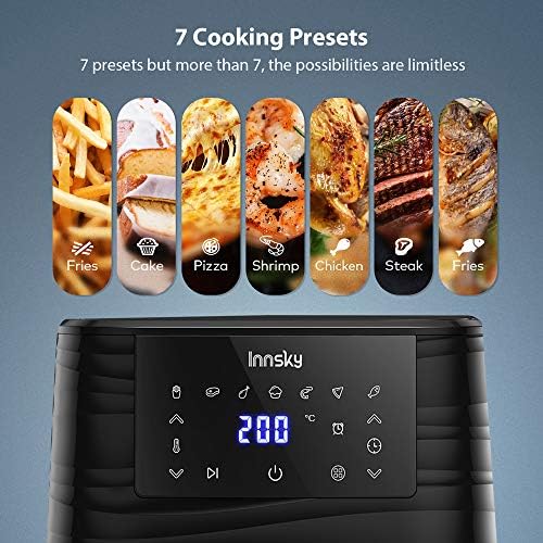 La crede che la frittura presuppone una preparazione di una base d’olio che una temperatura elevata fornisce di ottenere una parte esterna croccante e una interna morbida. Tuttvia l’olio non è affatto imprescindibile per un risultato del genere. la friggitrice ad aria infatti non serve olio perché il vettore di calore è la stessa aria, che riscaldata, viene fatta circolare una velocità molto elevata per avere una cottura uniforme simulando il controllo dell’olio nella frittura classica. il suo pannello di controllo LCD visualizza 8 programmi preimpostati che prevede di preparare un pasto in tempi record. la temperatura regolabile fino a 200 ℃ imposta da scegliere il grado di “croccantezza” da conferire ogni pietanza e ha il timer integrato impostabile fino ai 60 minuti. Dotata inoltre di segnali acustici che indicano il “pronto cottura”.