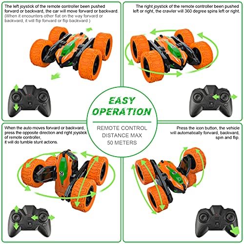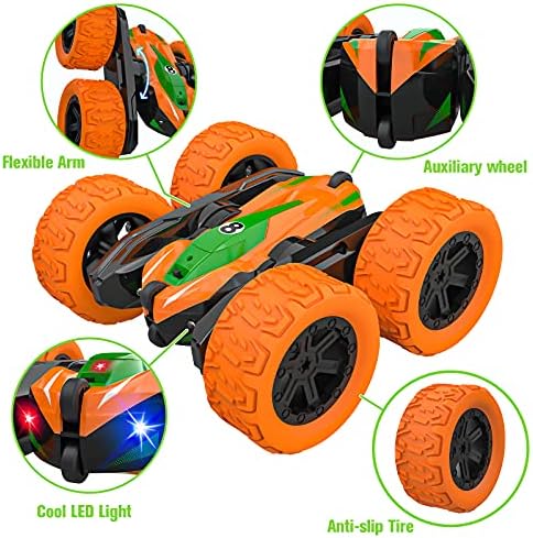<br>【Telecomando a 2.4 GHz】Il telecomando utilizza la banda di frequenza di 2.4 GHz. Con la tecnologia anti-jamming di frequenza a 2.4 GHz e la funzione di controllo a lunga distanza, ogni auto ha il proprio segnale indipendente, che garantisce ai bambini di poter giocare insieme senza interferenze.<br>【Ricaricabile e Luce LED】Design ricaricabile, i bambini possono caricare l’auto telecomandata 4x4 tramite un cavetto USB. (Non utilizzare caricabatterie o power bank con una tensione di uscita superiore a 5 V). La macchina è dotata di luci a LED. La sua bella illuminazione consente di godere le corse acrobatiche in un ambiente buio, per divertirsi di piu.<br>【Macchinina Multifunzione】Questa è un’auto giocattolo multifunzionale è controllata dal telecomando e può essere utilizzata come fuoristrada e come macchina acrobatica. Il design speciale rende questa macchina radiocomandata RC adatta a vari tipi di superfici. Può essere guidata all’interno su una superfice liscia o all’aperto su superfici irregolari.<br>【Regalo Perfetto】Questa macchina acrobatica multifunzione telecomandata è un fantastico regalo per ragazzi, ragazze, adolescenti, amanti delle auto e offre un’esperienza di gioco straordinaria! Questa macchina acrobatica sarebbe, per i bambini, un regalo perfetto x compleanno, x Natale o per qualsiasi vacanza. Famiglie, bambini e macchine telecomandate possono trascorrere piacevoli momenti insieme.