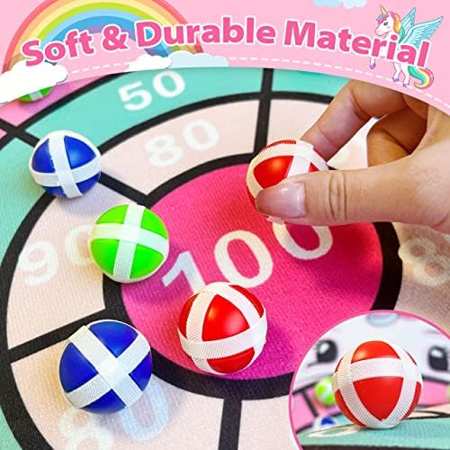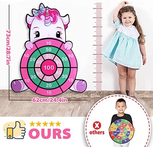 【Giocattoli di unicorno per ragazze】 Diametro del bersaglio per freccette di unicorno: 62 cm, lunghezza: 73 cm. Ogni prodotto contiene 12 palline che possono essere fissate saldamente al bersaglio. Include anche 2 ganci, 1 fiocco, 1 foglio di adesivi e 1 custodia. Questo bersaglio per freccette a forma di unicorno sospeso può essere utilizzato come striscione per feste o decorazione in soggiorno e giocattoli per bambini all’aperto per il cortile.
