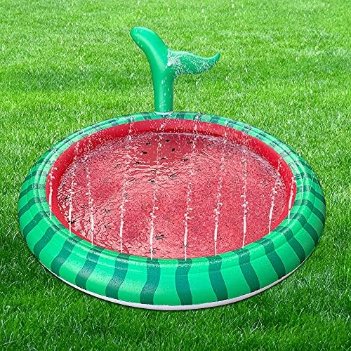 Materiale durevole e spruzzi in modo sicuro: il tappetino da gioco per l’acqua Splash è realizzato in PVC ecologico resistente, privo di BPA e ftalati. Nessuna fessura, nessuna perdita. La larghezza dell’anello esterno del paraspruzzi è aumentato in modo che possa contenere più acqua del rubinetto per formare una piscina per bambini. Rimani al sicuro e fresco con i giocattoli d’acqua all’aperto per i bambini.