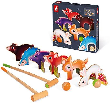 Questo grazioso set cricket animali della foresta interamente in legno promette ore di divertimento con famiglia o amici, per grandi e piccini. Scopo del gioco: far passare per primo la palla nelle 6 porte a forma di graziosi animali della foresta. Apparentemente molto semplice, questo gioco consente ai piccoli di sviluppare concentrazione, spirito di osservazione e agilità. Include: 6 porte, 2 mazze svitabili in 2 parti, 2 sfere (diametro 5 cm). Materiale/i usato/i: legno (massiccio per le sfere e le mazze, MDF per le porte). Fascia di età consigliata: da 3 a 6 anni. Tipi di apprendimento / valori educativi: scambiare e condividere, manipolare e maneggiare. Dimensioni del prodotto: lunghezza 32 cm x larghezza 8 cm x altezza 32 cm. Peso del prodotto: 1,45 kg. Avviso di sicurezza: non adatto a bambini di età inferiore ai 36 mesi.