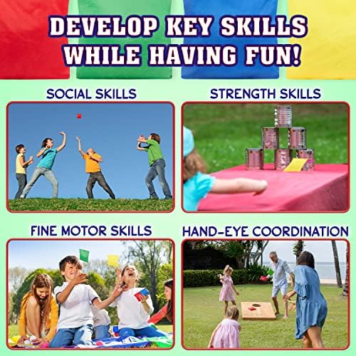 Adatto 5+ anni – questo kit di sacchetti da cornhole è adatto a bambini dai 5 anni in su, aiuterà a sviluppare l’equilibrio e la coordinazione occhio-mano