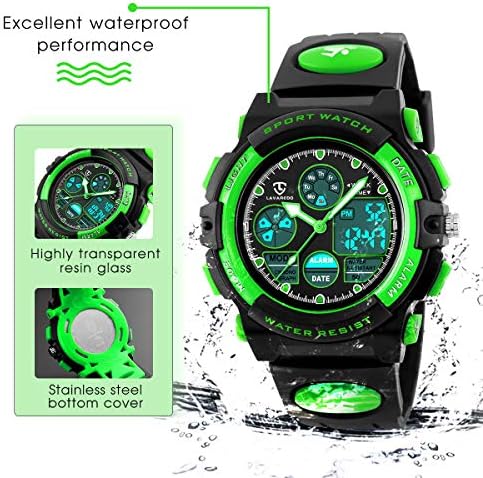 ※ Multifunzionale: calendario con finestra, doppio display orario, sveglia, impermeabile fino a 50 m, display con luce EL, antiurto, cronometro.