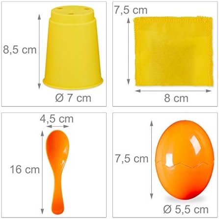 Colorato: bicchieri, sacchetti, sacchi, cucchiai e uova sono colorati – con linea di inizio/fino