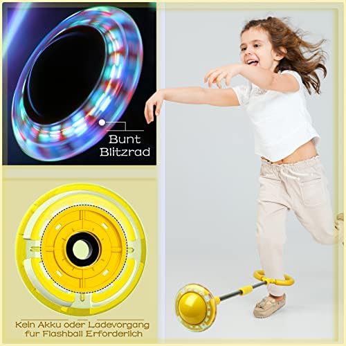 <br>★ Nuovo salto di aggiornamento: le ruote rotanti si illuminano automaticamente, colori accattivanti, emanano una luce fredda e sono molto accattivanti durante la notte.<br>★ Comodo da trasportare: design pieghevole, coulisse elastica integrata e tasca, facile da trasportare e riporre. Una maggiore facilità facilita le diverse età di mettere i piedi nel cerchio.<br>★ Design di sicurezza: lo strato di spugna è più morbido e copre l'anello della caviglia, che può proteggere la caviglia da lesioni. È sicuro e divertente, facile da usare ed emozionante. È un buon regalo per i bambini per giocare.<br>★ Adatto per la maggior parte delle età: per bambini e adulti, la palla aiuta a migliorare la coordinazione e le capacità motorie dei bambini, bruciare l'energia in eccesso e fare genitori un divertente allenamento aerobico con i bambini.