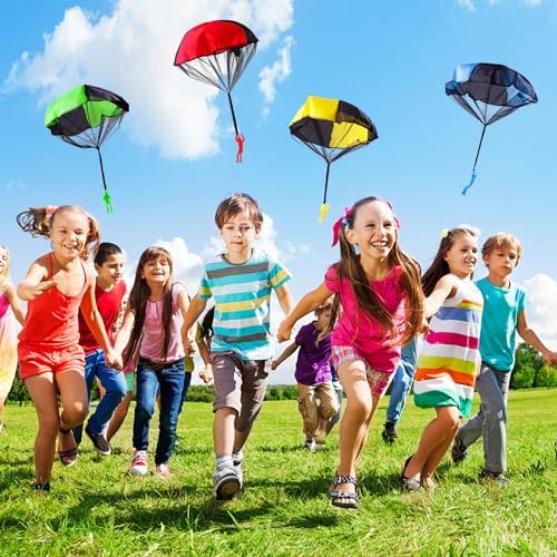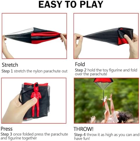 【Facile da giocare】Tre passi – Piegare, lanciare e prendere, il paracadute giocattolo è costruito da un unico pezzo di nylon che rende impossibile creare nodi o grovigli, non importa quanto si giochi con esso; super sicuro ed extra robusto, durevole e in grado di sopportare tonnellate di atterraggi bruschi; non ha bisogno di batterie o assemblare, i bambini possono operare da soli, basta lanciarlo in alto e guardarlo volare, sport e giochi all’aperto sono grandi giocattoli per ragazzi ragazze.