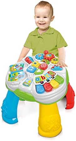 Un coloratissimo tavolo ricco di attività educative per apprendere i numeri, le lettere, le forme e i colori, i nomi degli animali e i loro versi. Con tanti effetti luminosi e allegre canzoncine e filastrocche stimola i sensi e la manualità dei più piccoli. Il libriccino aiuta i bambini a riconoscere gli animali e i loro versi, il piano li fa avvicinare al mondo della musica e insegna le prime letterine, gli ingranaggi li portano alla scoperta dei primi numeri e favoriscono, assieme alle altre attività meccaniche, lo sviluppo delle abilità motorie. Made in Italy.