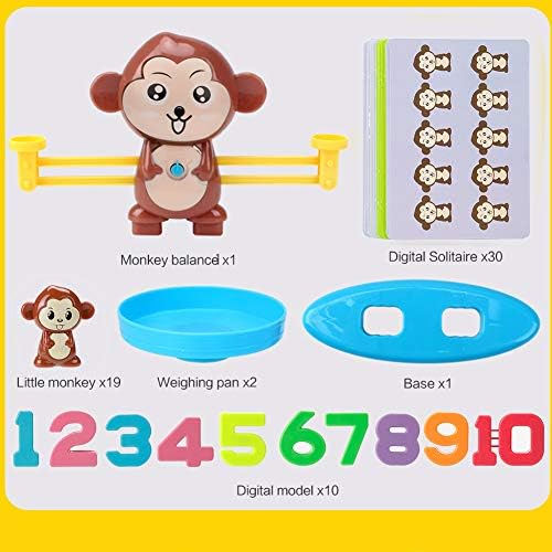 【Contenuti della Confezione】: questo set di giocattoli da 65 pezzi include: 19 scimmie, 1 – 10 numeri, 30 carte doppia-faccia, bilancia per scimmie, base, 2 quadranti e istruzione facile da capire. Nota: si prega di utilizzare sotto la supervisione di un adulto.