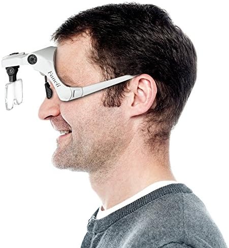 Indossalo come un paio di occhiali da vista o collega semplicemente la fascia per la testa inclusa per un’indossatura più ferma