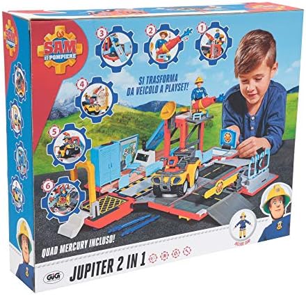 <br>Camion dei pompieri Jupiter a ruota libera<br>Si apre e rivela un playset: la stazione dei pompieri<br>Include 1 veicolo a ruota libera (Mercury), il personaggio di Sam e tanti accessori per arricchire il gioco<br>Jupiter ha luce sul tetto ed include il suono della sirena